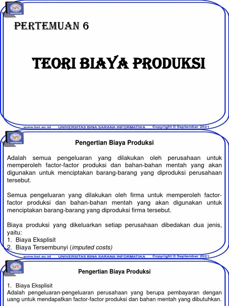 11.03.2021 · biaya eksplisit terbagi menjadi dua jenis yaitu biaya tetap (fixed cost) dan biaya variabel (variable cost). Bisa juga berupa upah untuk tenaga kerja atau gaji untuk karyawan. *biaya eksplisit adalah biaya yang biasa dikeluarkan oleh perusahaan atau juga biaya yang bisa terhitung nilainya. Biaya tetap ( fixed cost ) adalah biaya yang nilainya tidak mudah mengalami perubahan dalam satu periode akuntansi (biasanya satu tahun). Biaya eksplisit adalah biaya yang sebenarnya dikeluarkan oleh organisasi, selama produksi. Baik biaya tetap maupun biaya variabel masuk ke dalam anggaran keuangan perusahaan. Berdasarkan pembayaran, biaya diklasifikasikan ke dalam dua kategori; Biaya eksplisit adalah biaya yang wajib dikeluarkan oleh perusahaan saat ingin memperoleh atau menghasilkan sesuatu. Biaya yang dikeluarkan oleh perusahaan dapat dikelompokkan dalam dua katagori yaitu biaya eksplisit dan biaya tersembunyi. Biaya eksplisit ini juga dapat didefinisikan sebagai biaya nyata yang harus dibayar kepada pihak lain selama menjalankan bisnis. 13.09.2016 · biaya eksplisit dan implisit merupakan biaya produksi. 24.08.2020 · biaya eksplisit mencakup semua pengeluaran uang yang dicatat dalam pembukuan atau laporan keuangan perusahaan. Di sisi lain, biaya implisit, hanya berlawanan dengan biaya eksplisit, karena organisasi tidak secara langsung menanggungnya, tetapi mereka tersirat pada dasarnya yang tidak melibatkan …